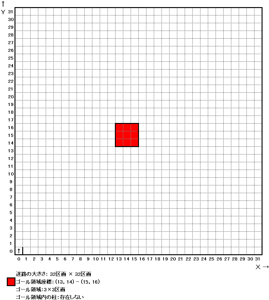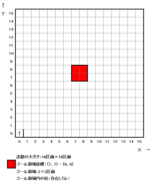 マイクロマウス競技に使用する迷路のサイズ、ゴール地点及び競技時間は、以下の通りとなります。