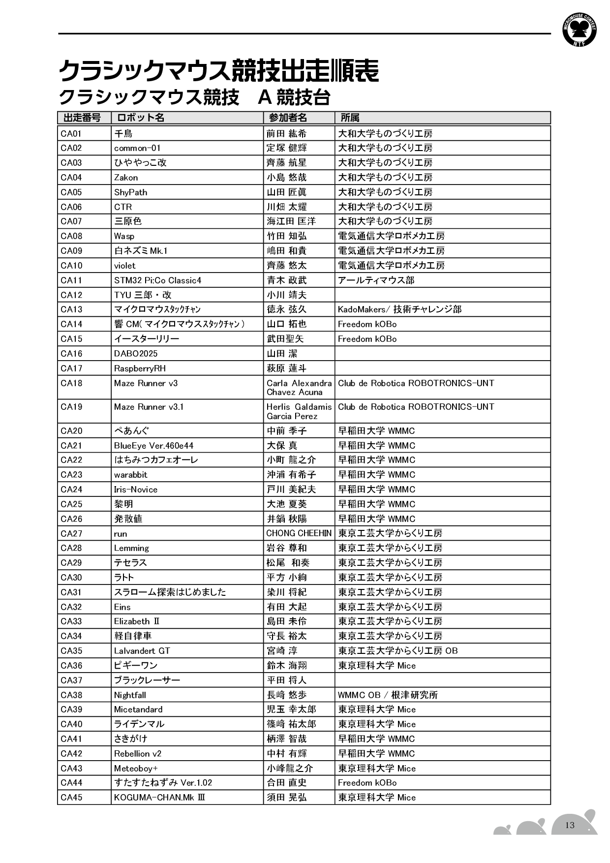 開催競技:マイクロマウス競技、クラシックマウス競技、ロボトレース競技