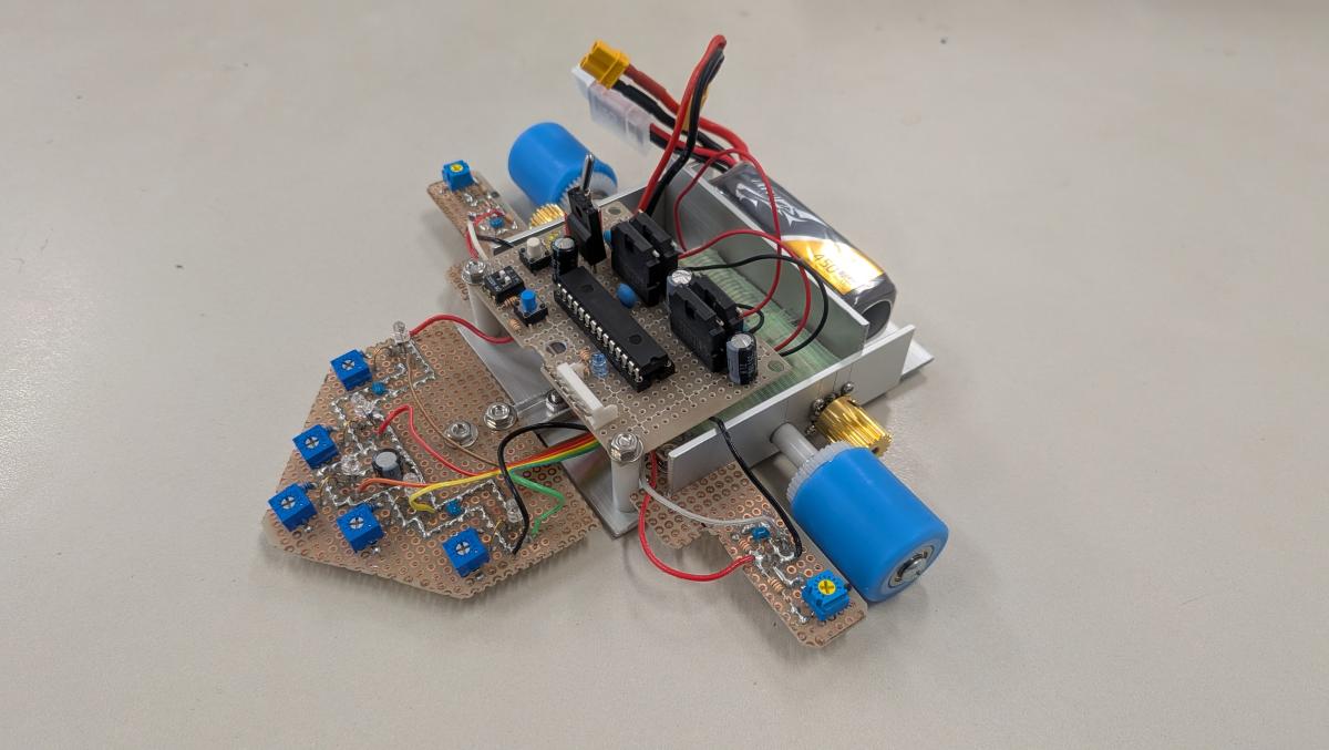 | 64 チュー介 柳 虎之介 湘南工科大学ロボット研究部 マイコン:AVR系 サイズ:200x150x50 [mm] 200[g] |