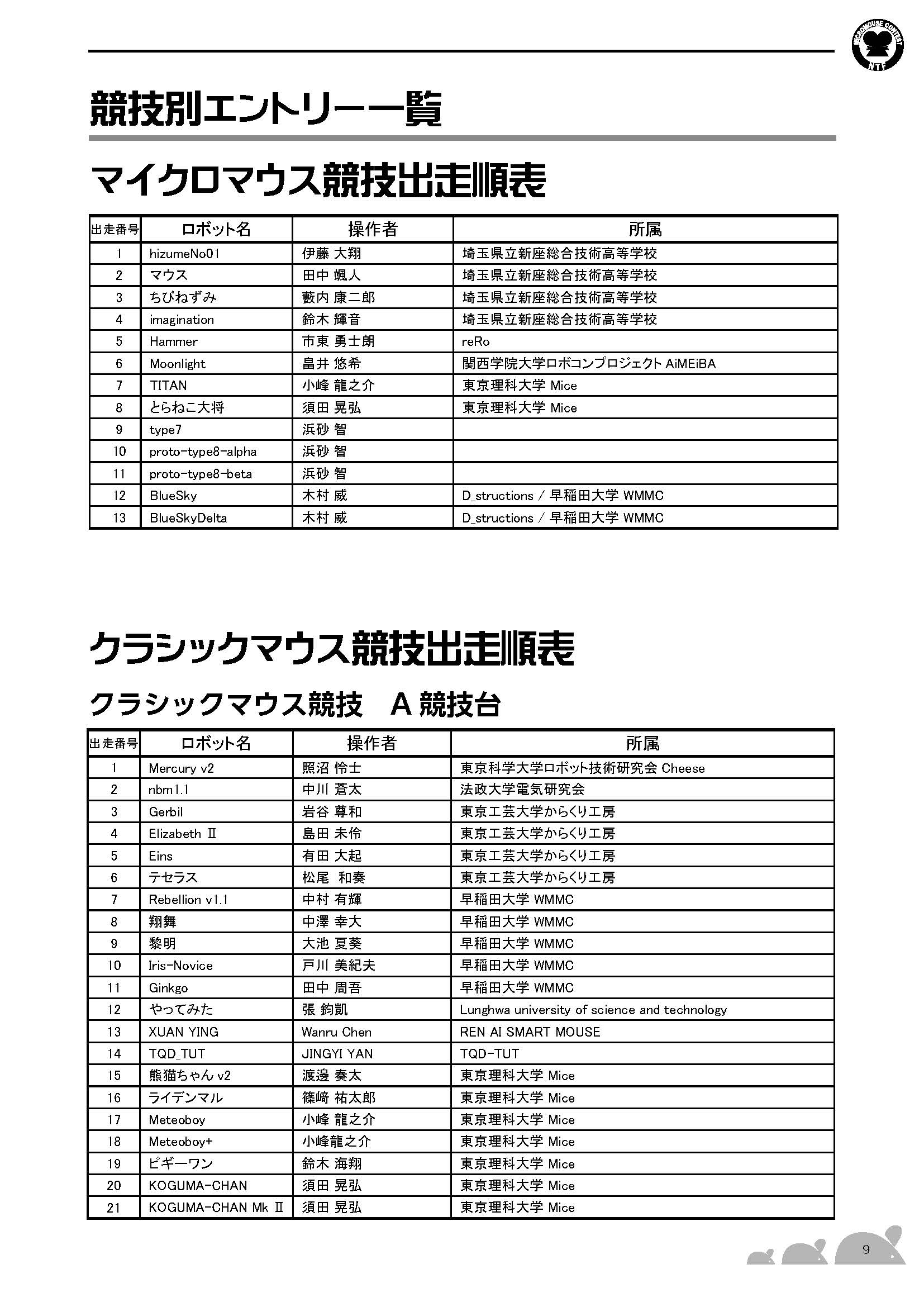 開催競技:マイクロマウス競技、クラシックマウス競技、ロボトレース競技